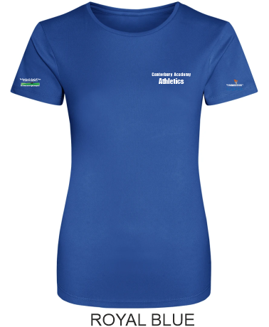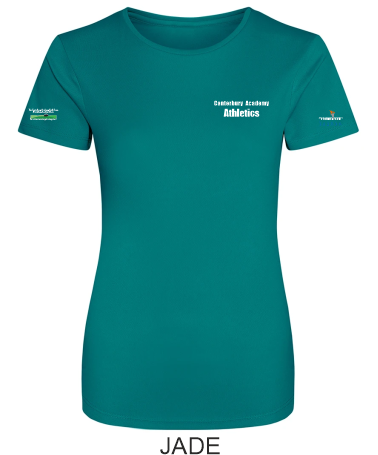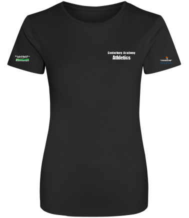 The Canterbury Academy Athletics Student Sport T-Shirt with Logos on Front , Sleeves and Back