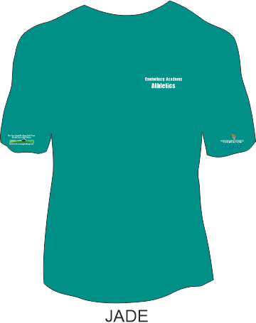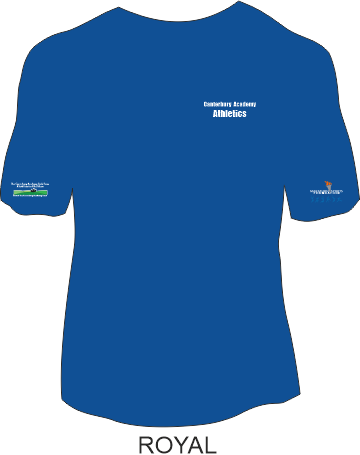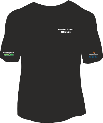 The Canterbury Academy Athletics Student T-shirt with Logos on the Front, Sleeves and Back